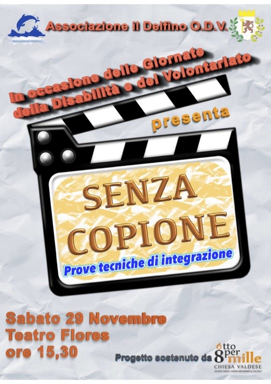 29 novembre ore 15,30 presso Teatro Flores Vanzago Spettacolo "SENZA COPIONE" Prove tecniche di integrazione. Regia di MARCO NICOSIA